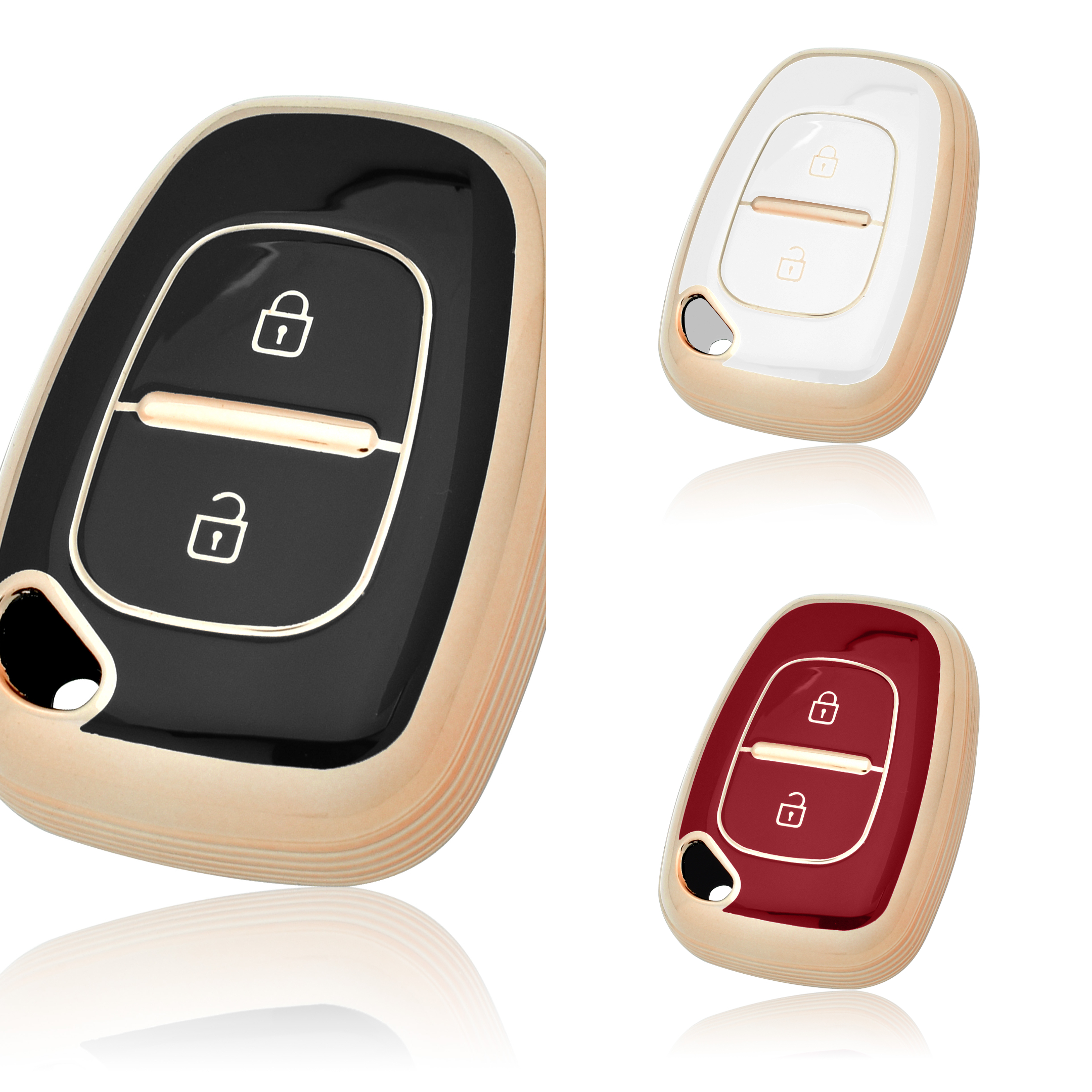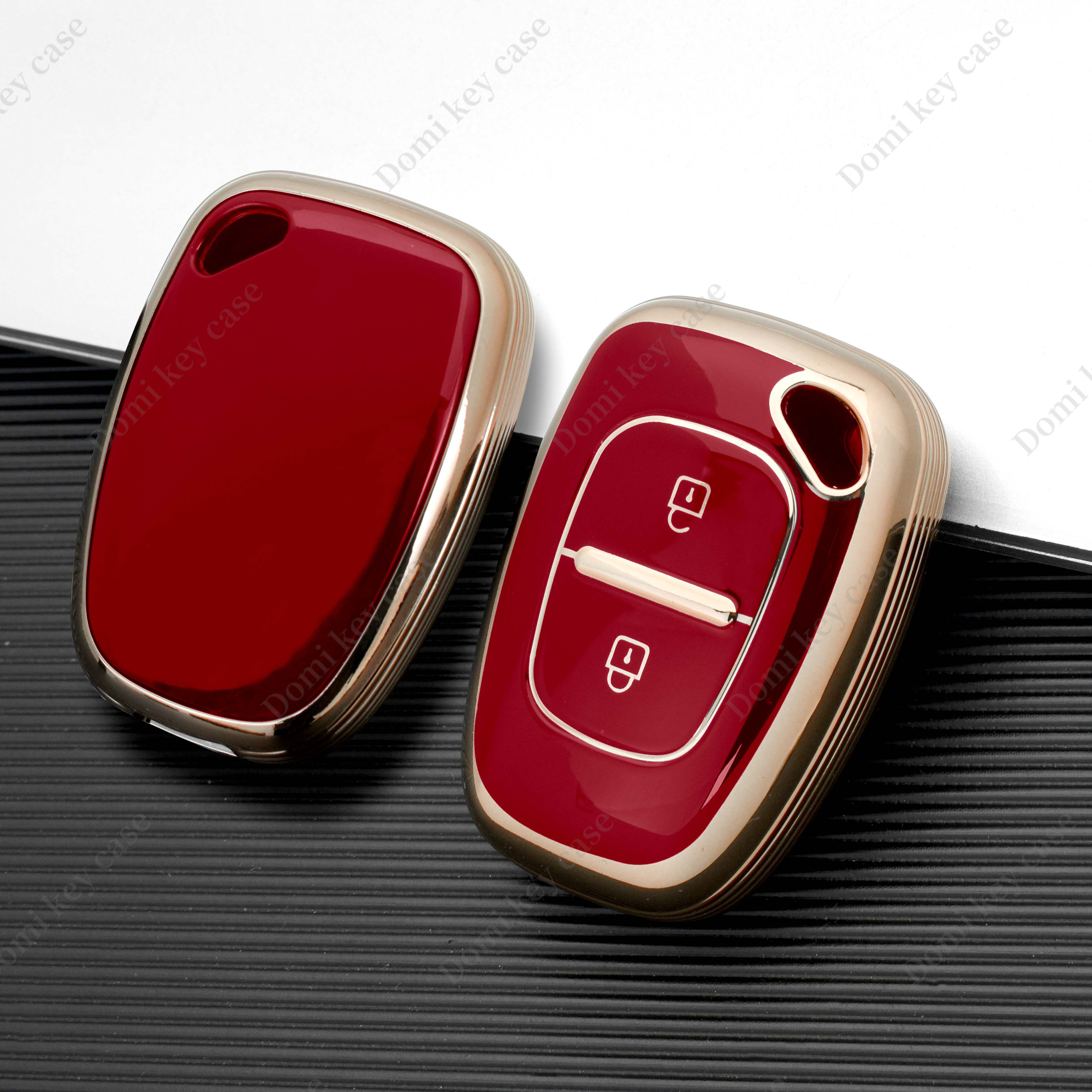 This DM-branded car key cover is specifically designed to protect the remote key fob for various Renault models. Made from flexible and durable Thermoplastic Polyurethane (TPU), it offers a sleek look with a gold line accent while providing essential protection against daily wear and tear.