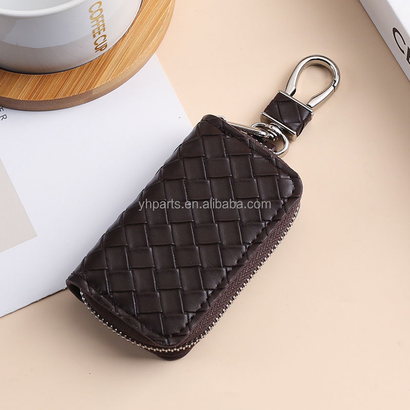 YH Fashionable Car Key Holder: Portable Leather Cover with Buckle Auto Vehicle Chain Key Case Bag