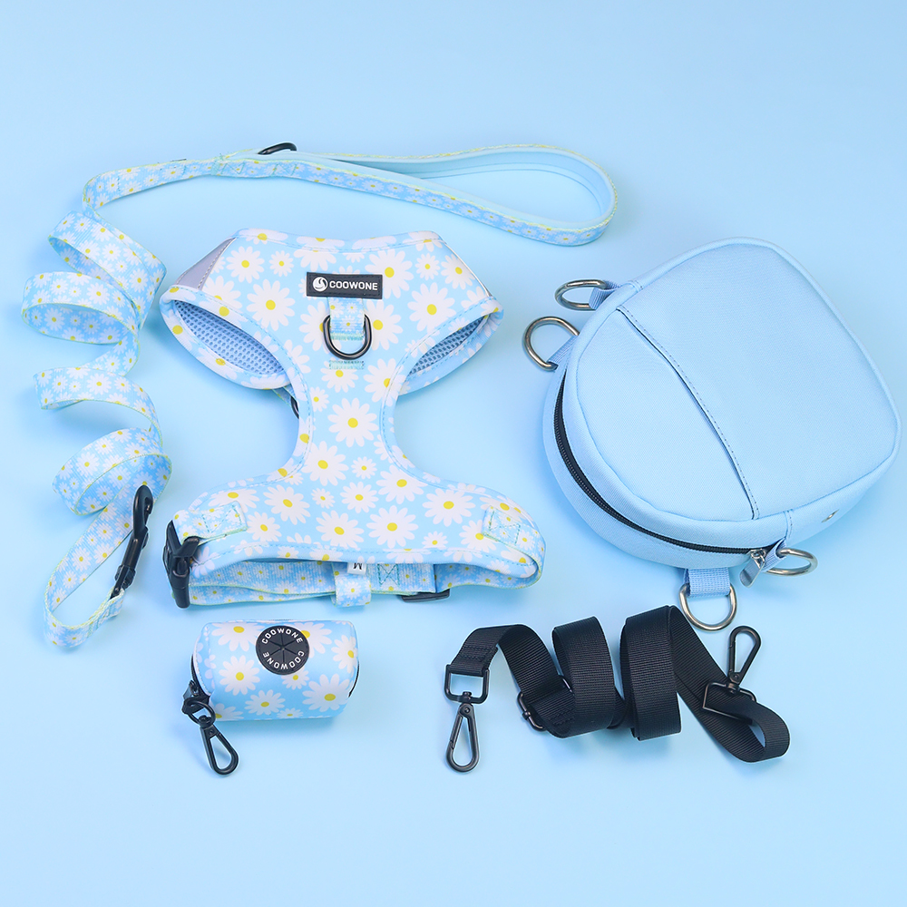This product is a premium, customizable dog harness set designed for comfort, safety, and control during training and daily walks. Manufactured by Changsha Coowone Pet Products Co., Ltd., a certified custom manufacturer with over 6 years of experience, the harness is crafted from high-quality neoprene material, known for its durability and softness. Key features include high reflectivity for enhanced visibility in low-light conditions, an adjustable design for a secure fit, and a no-pull structure to aid in training. The product also supports extensive customization, allowing for the addition of brand logos, patterns, or decorative elements like bowknots, making it suitable for both individual pet owners and bulk buyers such as pet stores or promotional event organizers.
