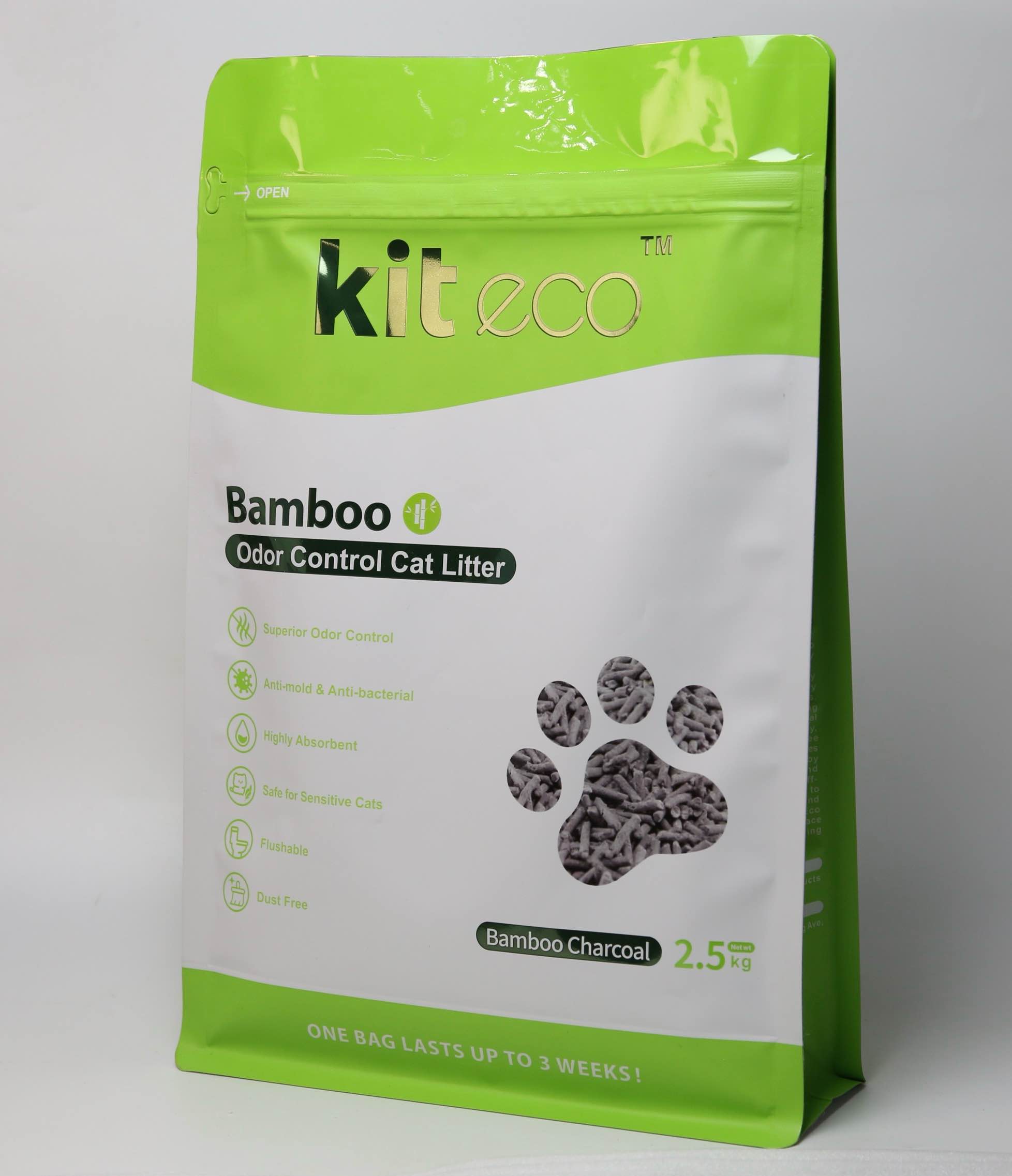 Kit Eco Natural Bamboo Biodegradable Flushable Cat Litter