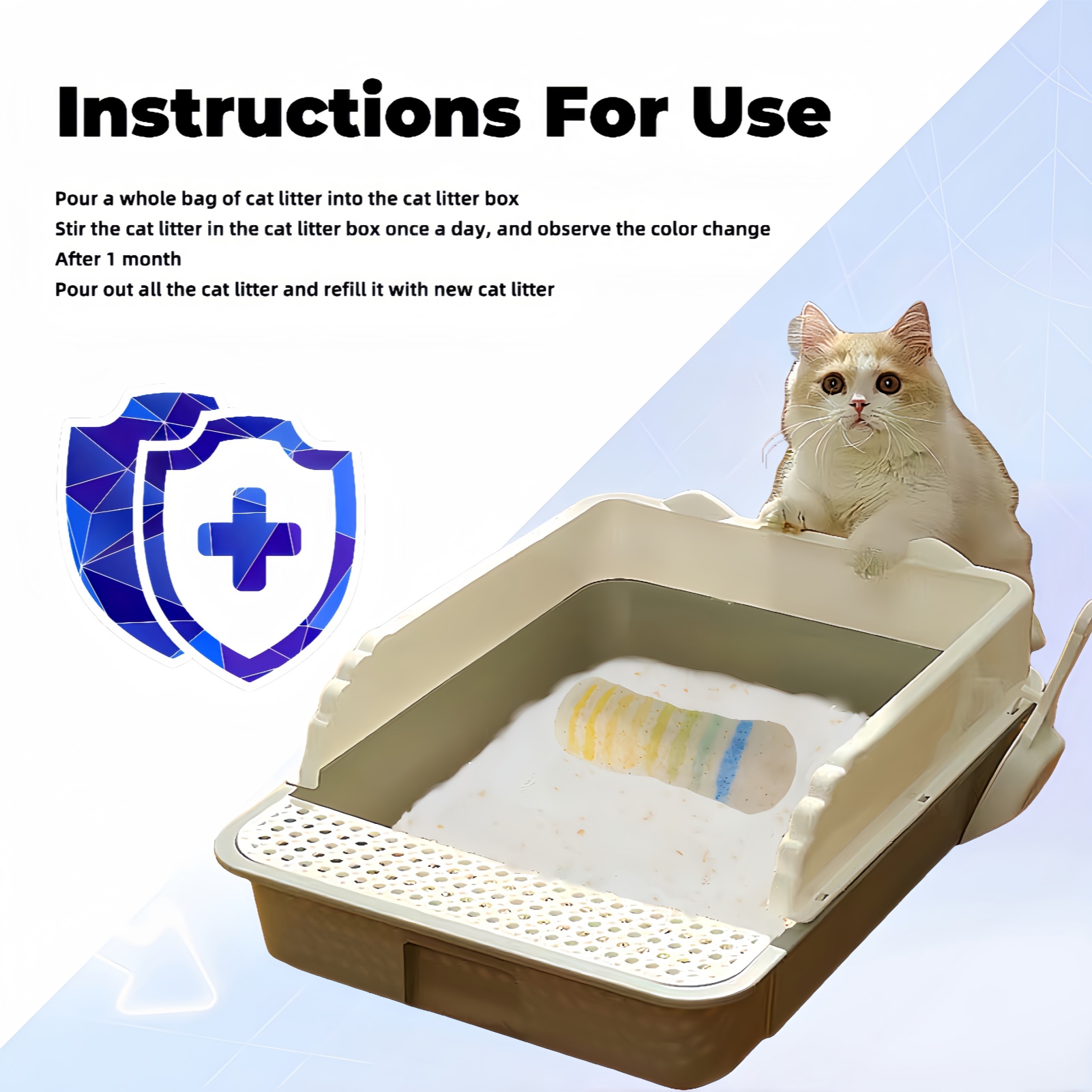 Unlike clumping litter, crystal litter works by absorbing urine and drying out solid waste. Simply scoop solid waste daily. The crystals will gradually change color (usually from clear to yellow) as they absorb moisture, indicating when the litter needs refreshing.