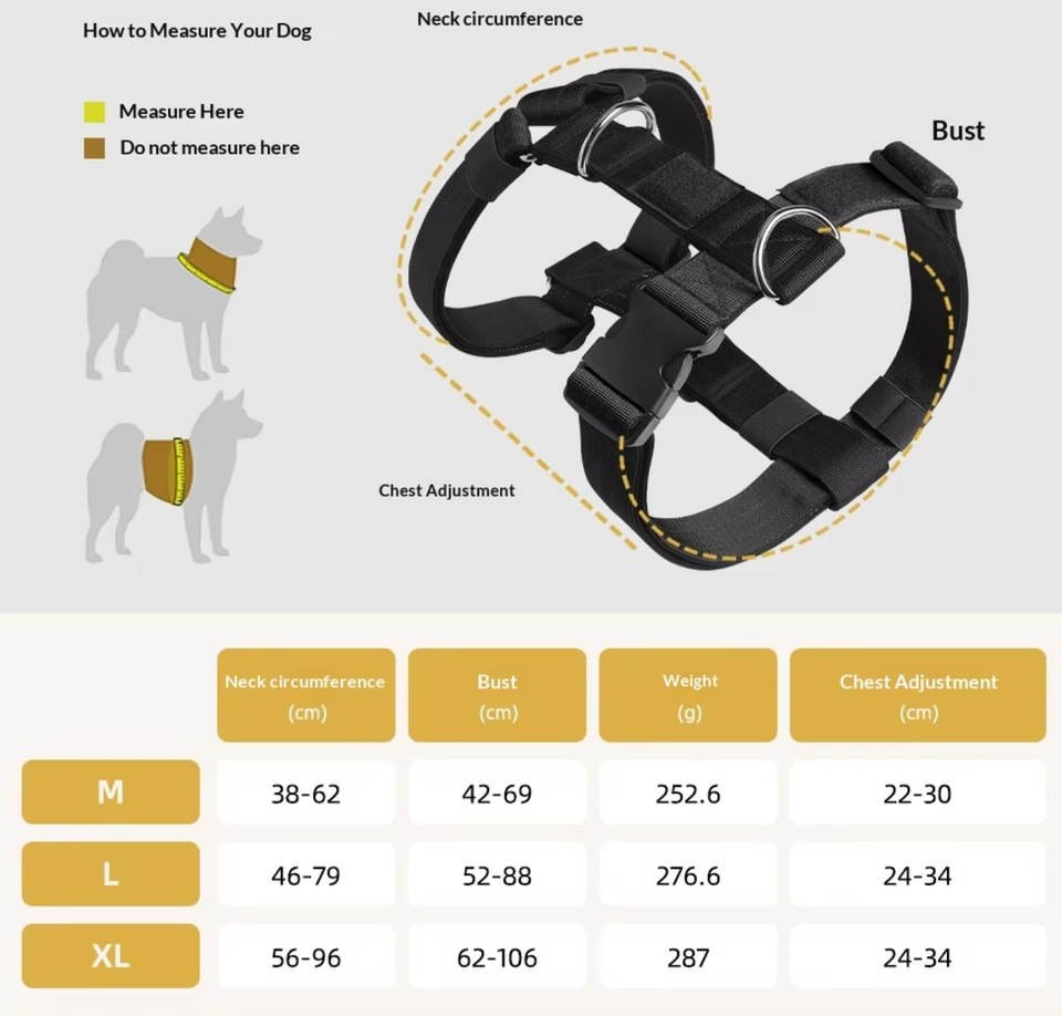 Work & Service: The MOLLE webbing allows for the attachment of patches, small bags, or medical kits for service or search-and-rescue dogs.
