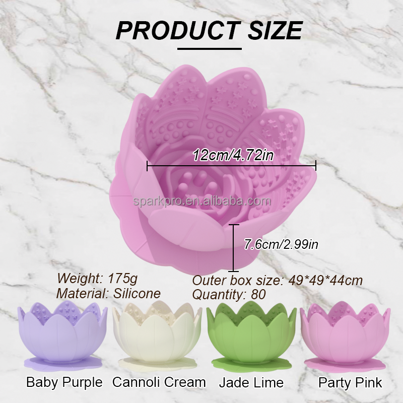 The SparkPro Lotus Silicone Lick Bowl is a thoughtfully designed 2-in-1 pet product that functions as both a slow feeder and a lick mat. Crafted from high-quality, food-grade silicone, it is engineered to promote healthier eating habits for pets by encouraging slower eating and providing mental stimulation.