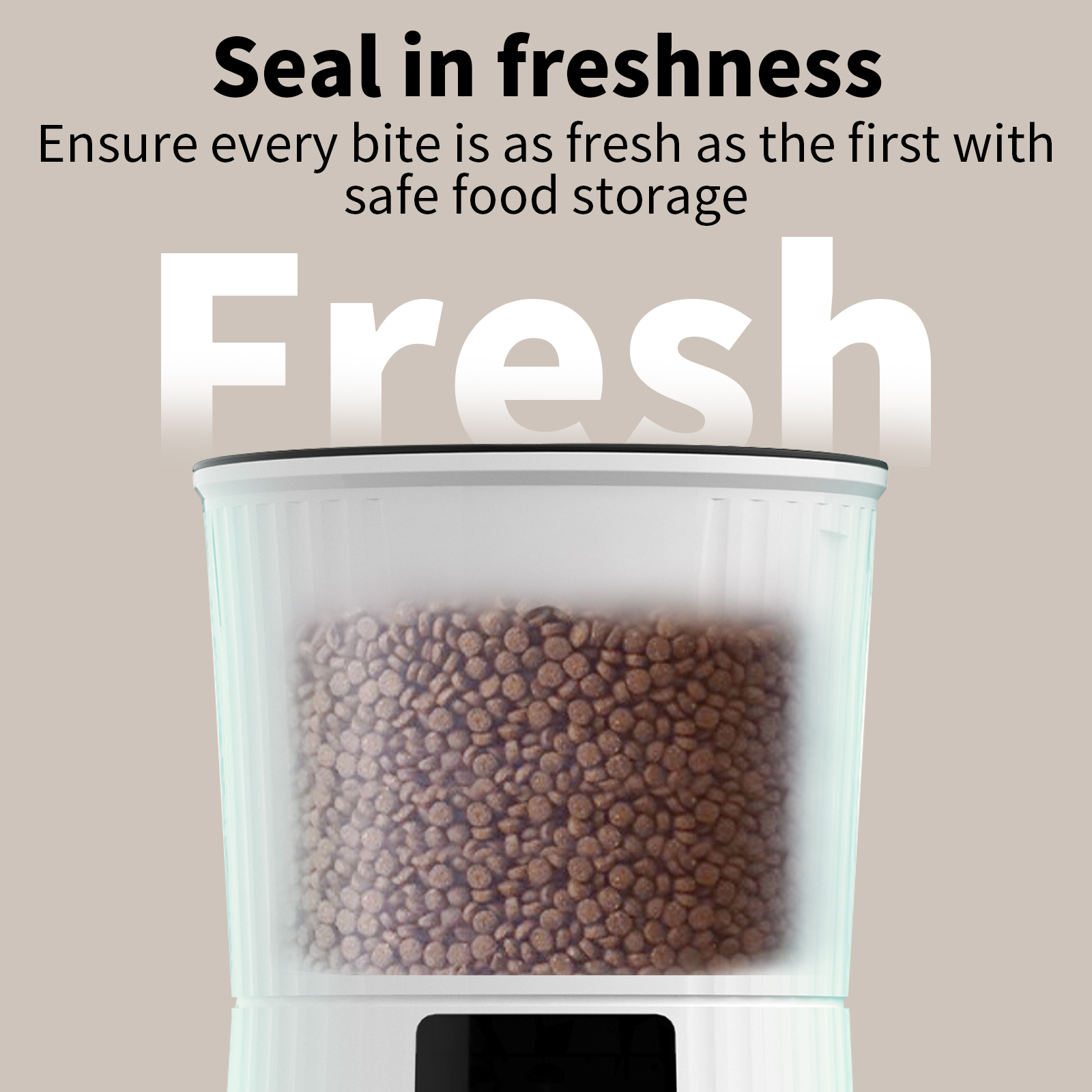 Fill with Food: Open the top lid and fill the storage container with dry pet food. Ensure the food is dry to prevent clogging.