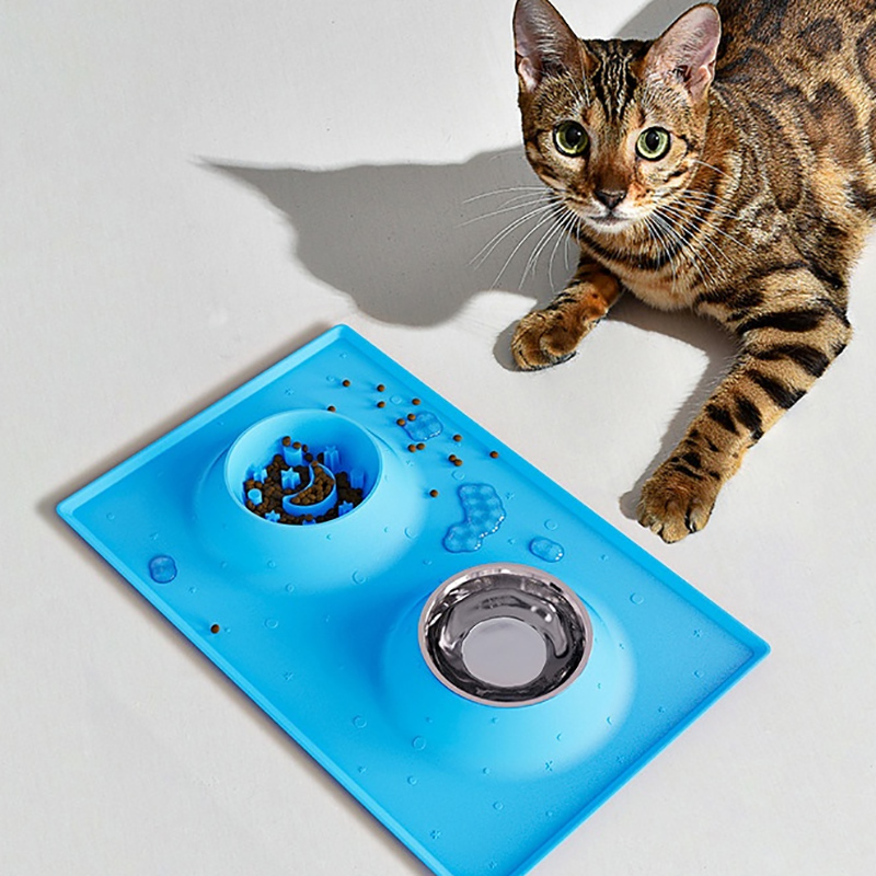 Double Bowl Functionality: The set allows for the neat separation of food and water, promoting better hygiene and feeding habits. Some designs feature a removable silicone mat that can be used separately as a slow feeder lick mat for wet food or treats.