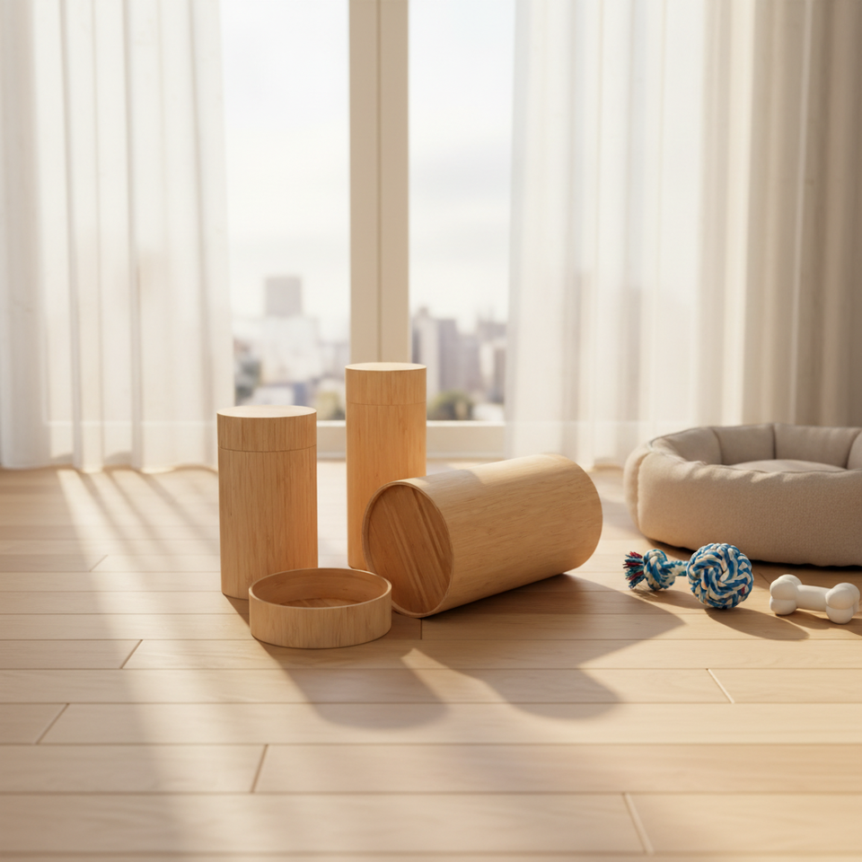 Constructed from high-quality bamboo and wood, this urn is not only durable but also biodegradable, aligning with eco-conscious values. The materials are carefully selected and sealed to protect the contents from moisture and environmental factors. The craftsmanship ensures a smooth finish and a sturdy structure that honors your pet's memory.