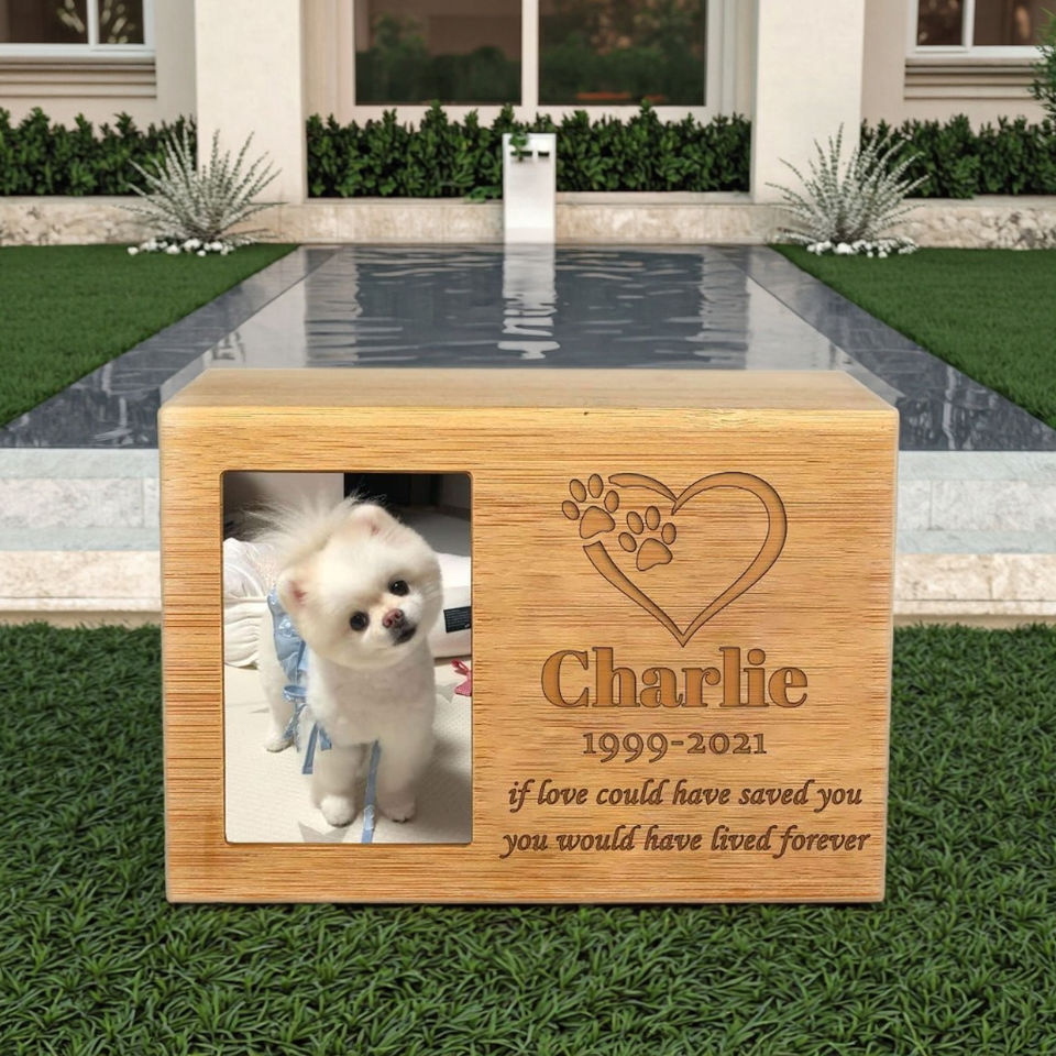 This handmade wooden pet memorial urn is designed as a dignified and lasting tribute to your beloved companion. Crafted from high-quality pine wood, it features a modern square design that is both elegant and durable. The urn is eco-friendly and can be fully customized, including options for a photo frame, making it a unique keepsake for small animals such as cats, rabbits, and small dog breeds.