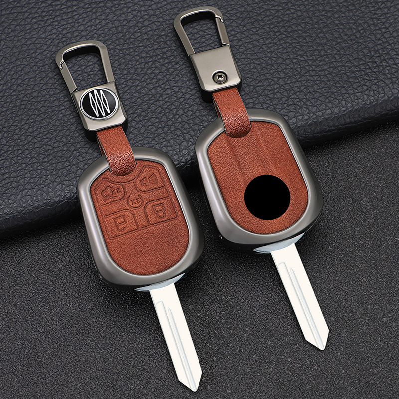 This high-quality key case cover is specifically designed for the 2013 Ford Edge, offering a blend of durability and sophisticated style. Crafted from a robust zinc alloy frame and wrapped in genuine leather, it provides superior protection against scratches, drops, and daily wear. The product is engineered to ensure lossless signal transmission, meaning it won't interfere with your key fob's remote functionality. It is a direct replacement for the original key shell, featuring precise cutouts for all five buttons and a built-in keychain for added convenience.