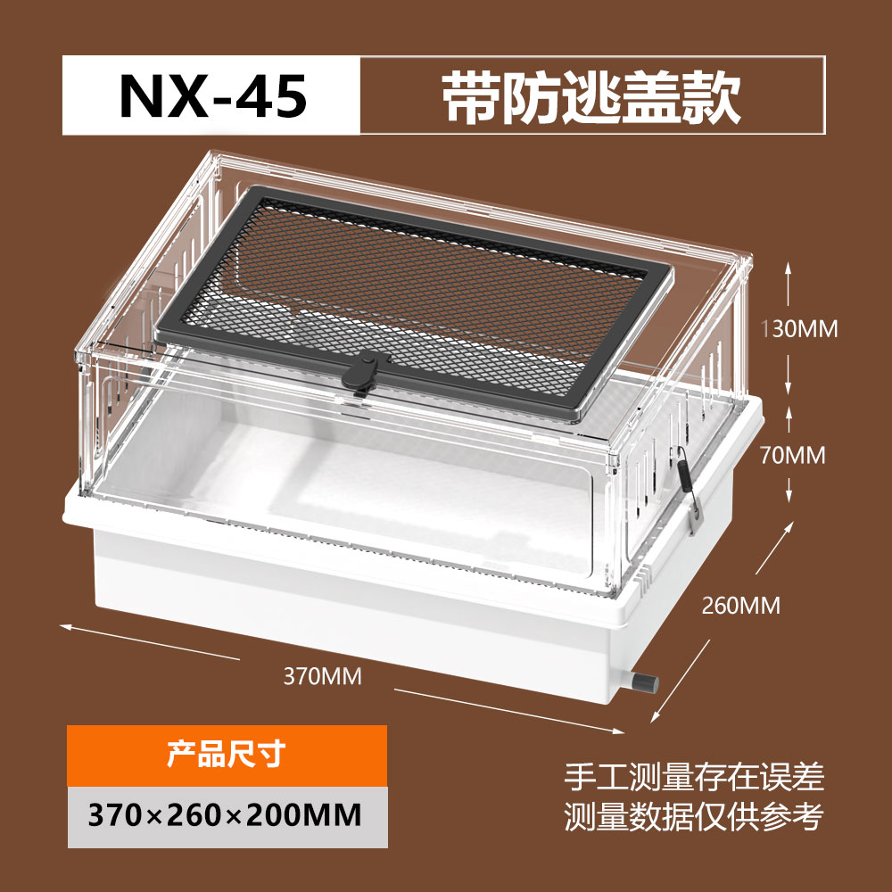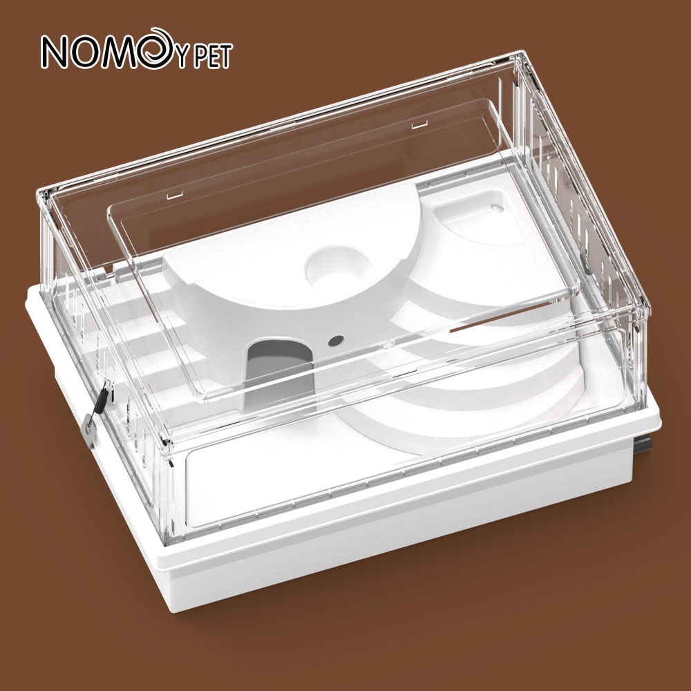 The NOMOYPET NX-45 is a detachable, rectangular plastic cage designed for the safe and comfortable housing of small pets. Manufactured by Jiaxing Nuomo Intelligent Household Products Co., Ltd., this cage emphasizes ease of cleaning, durability, and a simple, modern aesthetic suitable for indoor use.