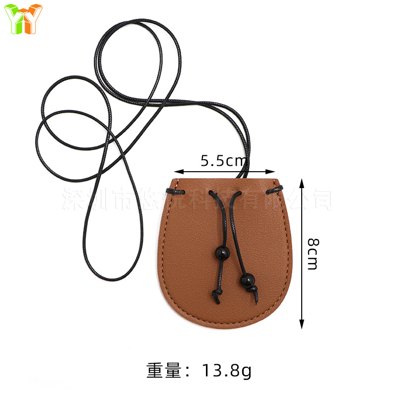 This multi-functional mini coin purse combines practicality with high-end fashion. Crafted from soft PU Leather and featuring a unique drawstring closure, it can be used as a necklace, keychain, or a decorative bag charm. Its compact size (5.5 x 8 cm) makes it perfect for storing coins, small essentials, or simply as a stylish accessory.